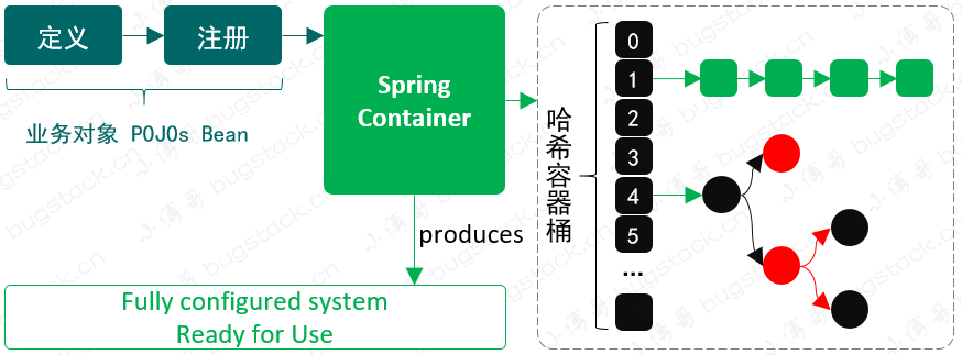 凡是可以存放数据的具体数据结构实现,都可以称之为容器。例如:ArrayList、LinkedList、HashSet等,但在 Spring Bean 容器的场景下,我们需要一种可以用于存放和名称索引式的数据结构,所以选择 HashMap 是最合适不过的。