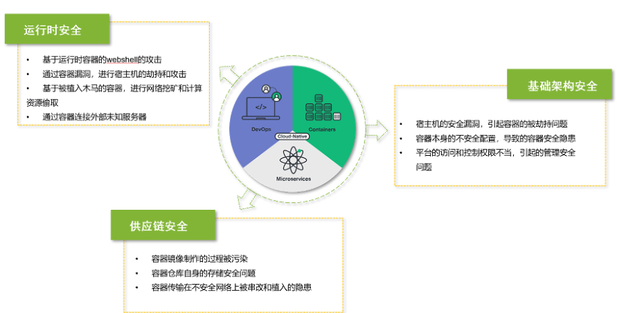 云原生安全和传统技术安全最主要的区别在于云原生在开源层面引入了非常多的组件,这对云原生的业务带来新的安全挑战。