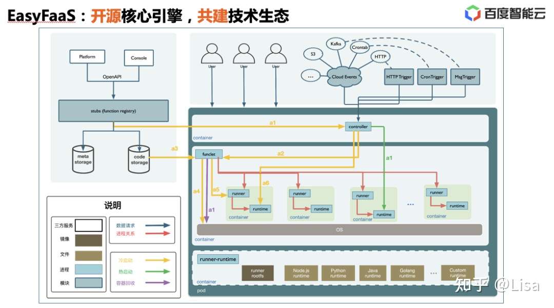 - EasyFaaS:是一个依赖轻、适配性强、资源占用少、无状态且高性能的函数计算服务引擎,目前正式对外开源,地址是https://github.com/baidu/EasyFaaS