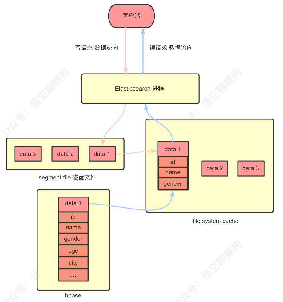 ES 的工作原理:往 ES 里写数据时,实际是写到磁盘文件,查询时,操作系统会将磁盘文件里的数据自动缓存 filesystem cache 里面。如果给 filesystem cache 更多的内存,尽量让内存可以容纳所有的 idx segment file 索引数据文件,则搜索的时候走内存,性能较好。