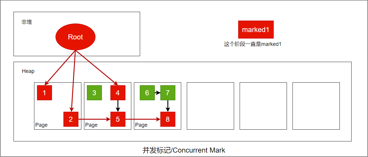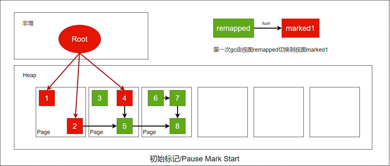 1.视图:即marked0, marked1,remapped视图,他们对应用一个物理空间,在ZGC中这三个视图在同一时间点有且仅有一个生效。每个视图是一个对物理地址的映射。