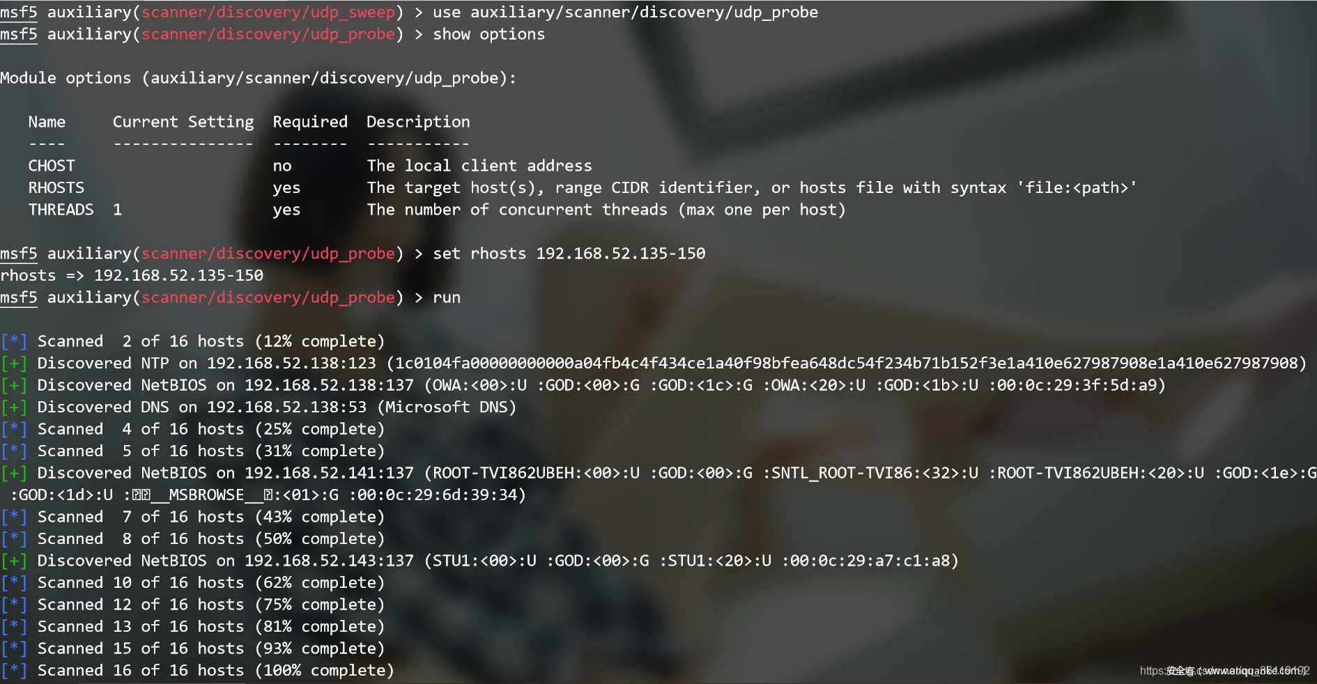 auxiliary/scanner/discovery/udp_probe #基于udp协议发现内网存活主机