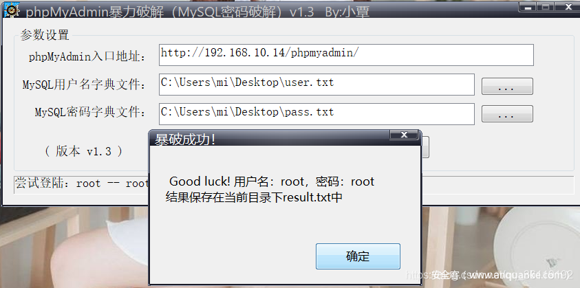 对phpmyadmin后台进行爆破,得到账号密码:root/root