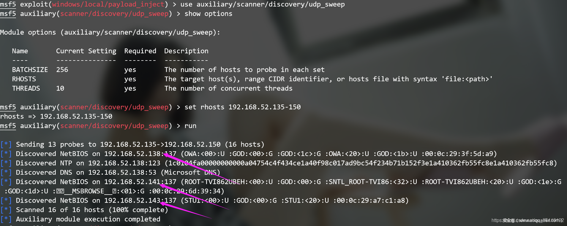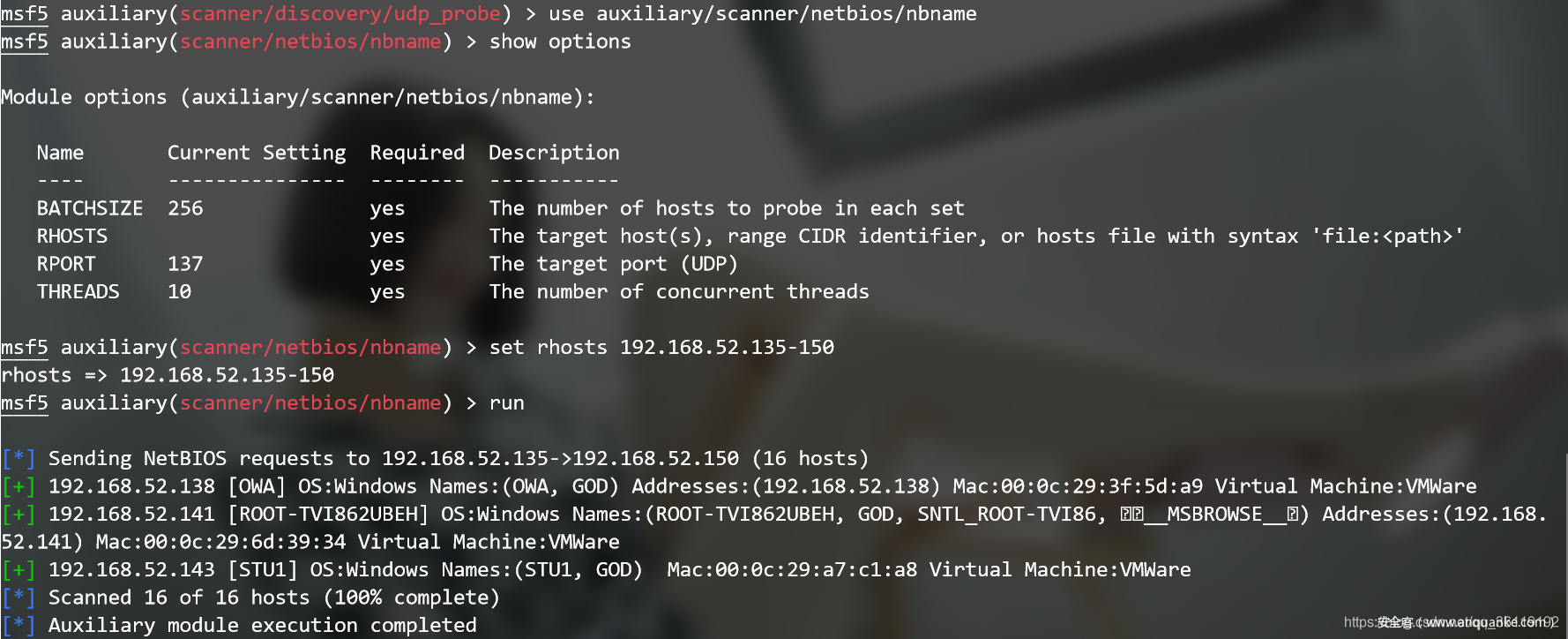 auxiliary/scanner/netbios/nbname #基于netbios协议发现内网存活主机