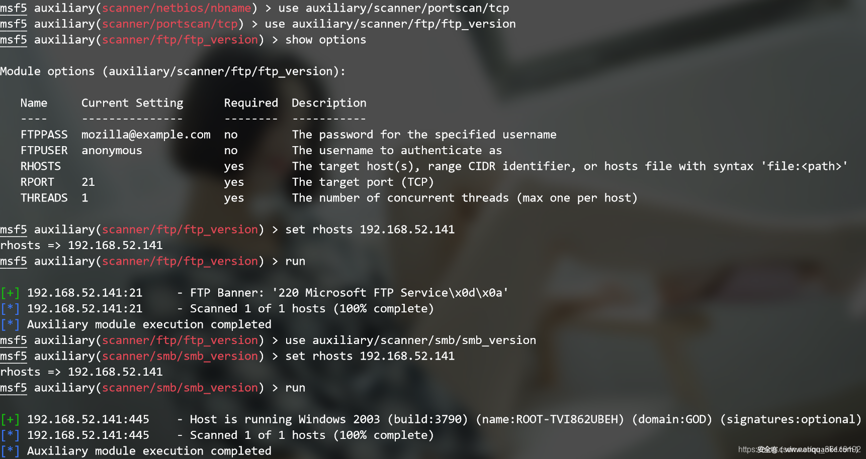 auxiliary/scanner/ftp/ftp_version #发现内网ftp服务,基于默认21端口