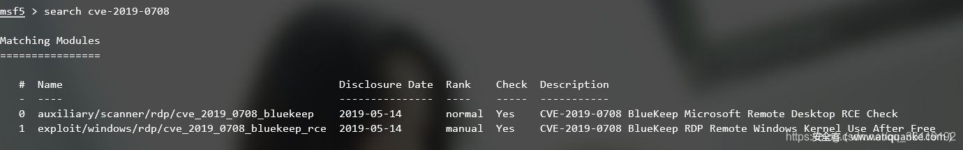 auxiliary/scanner/rdp/rdp_scanner #发现内网RDP服务,基于默认3389端口