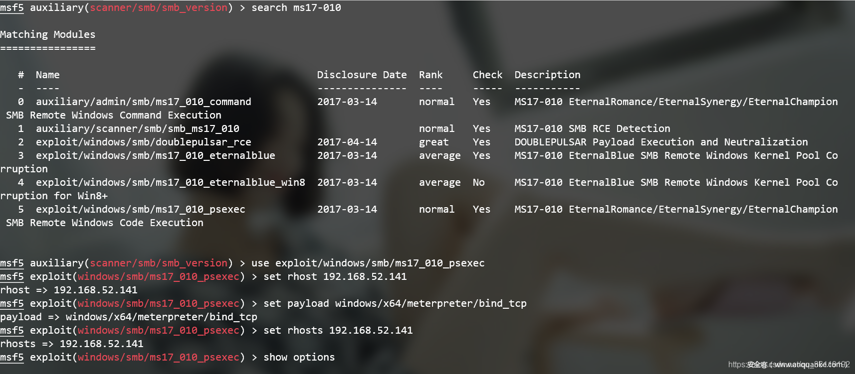 auxiliary/scanner/smb/smb_version #发现内网smb服务,基于默认的445端口