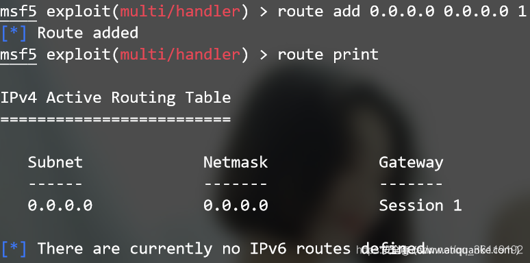 · 添加路由的目的是为了让我们的MSF其他模块能访问内网的其他主机