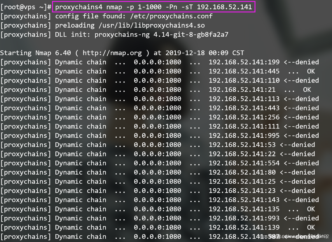 2:使用 proxychains 代理链利用 nmap 对内网主机进行端口探测