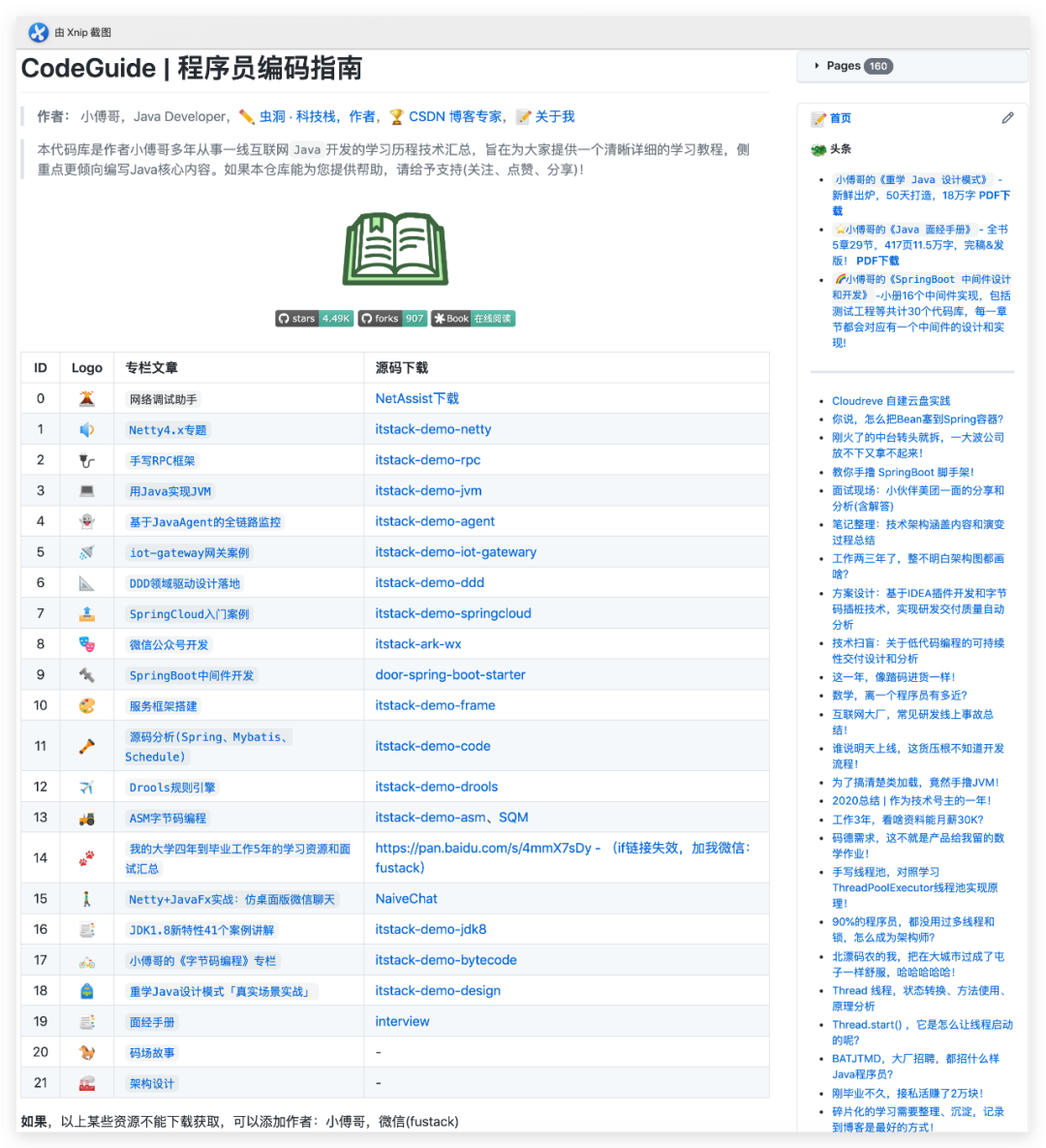 还创建了第一个关于:CodeGuide | 程序员编码指南,的Git仓库,涵盖了;文章、源码、案例、书籍等各项学习拓展技能的资料。