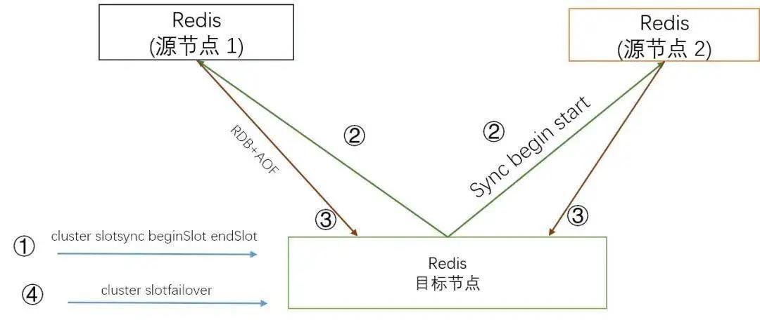 目标节点向源节点发送 sync [slot ...], 命令请求同步 slot 数据