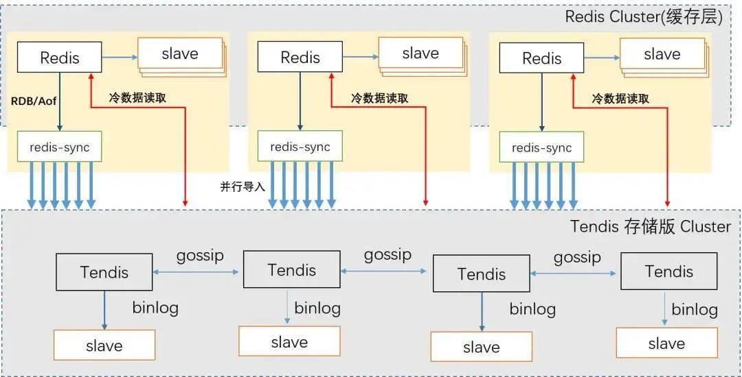 同步层 Redis-sync: 1) 并行数据导入 存储层 Tendis; 2) 服务无状态, 故障重新拉起; 3) 数据自动路由。