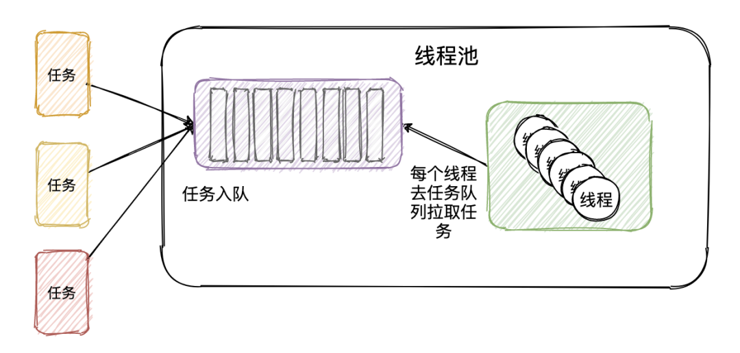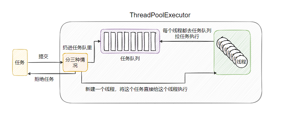 线程池内部会有一个队列来存储我们提交的任务,而内部线程不断地从队列中索取任务来执行,这就是线程池最原始的执行机制。