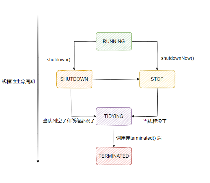 SHUTDOWN:不接受新任务,但是可以处理阻塞队列中的任务