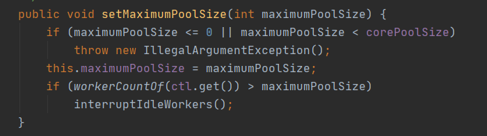 与interruptIdleWorkers 对应的还有一个 interruptWorkers 方法,从名字就能看出差别,不空闲的 worker 也直接给打断了。