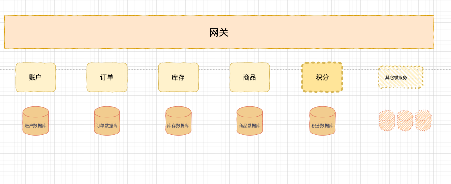 如果我们的业务逻辑做了一些调整,比如,我们想要增加一个积分功能,那么,我们只需要再增加一个叫做积分的微服务即可。