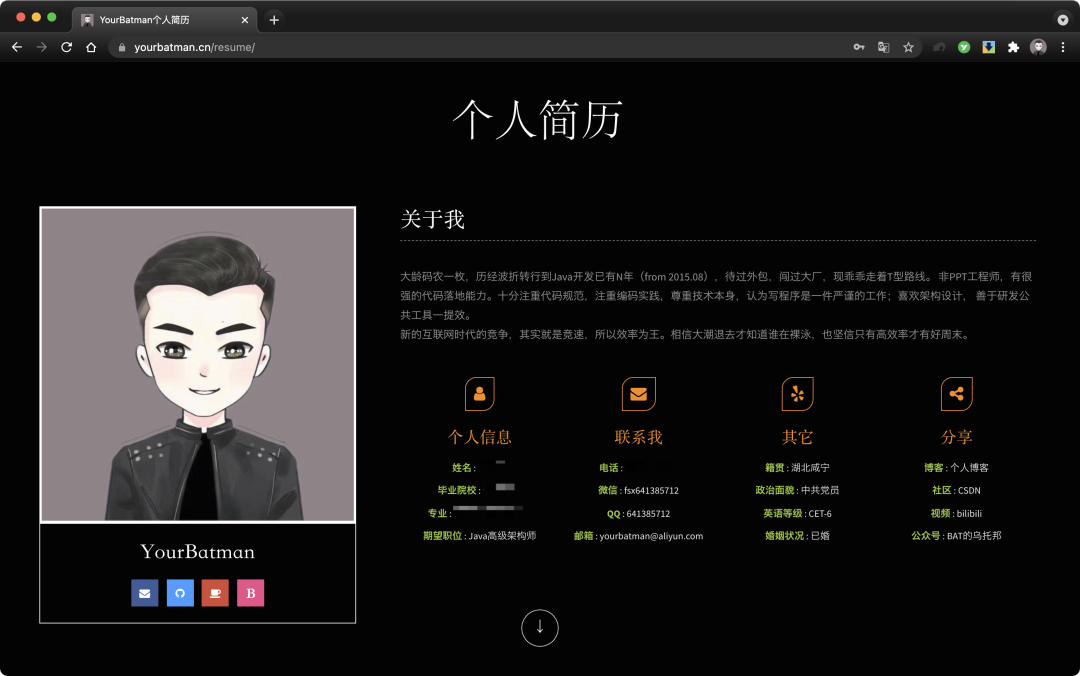 我的简历:顾名思义,这是我求职会用的简历喽。密码是:xxxxxx -