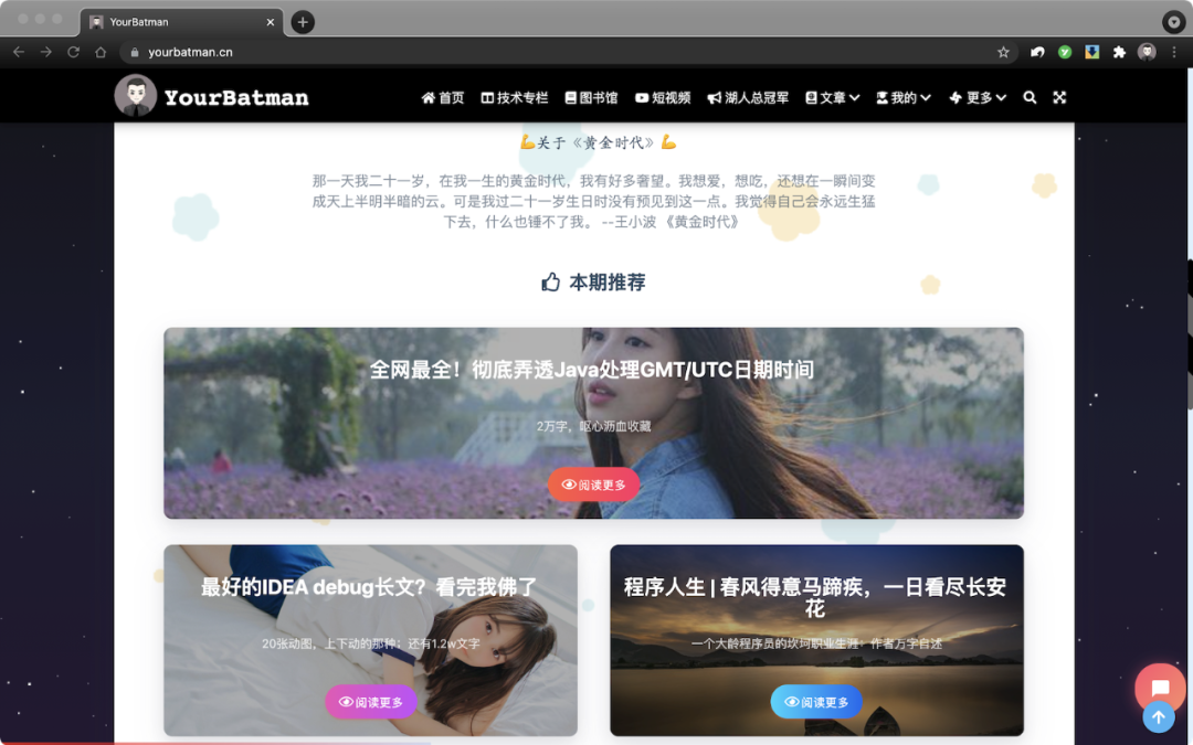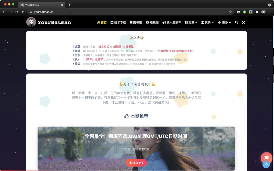 你好,我是YourBatman。本文阅读起来很轻松,介绍我近期建站的一些心得和站点内容分享:https://yourbatman.cn