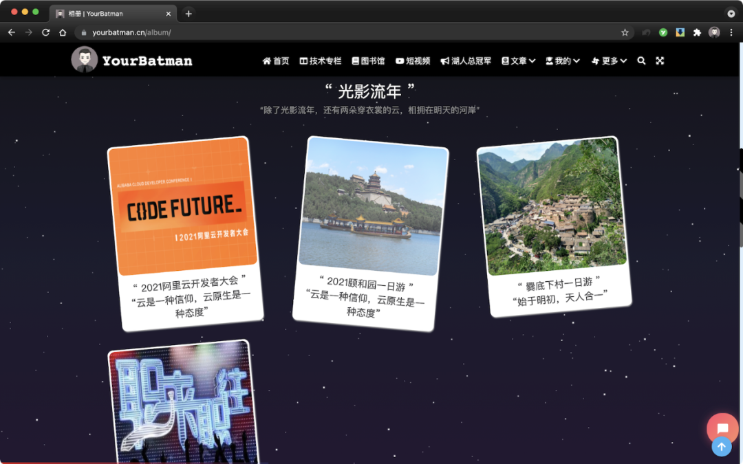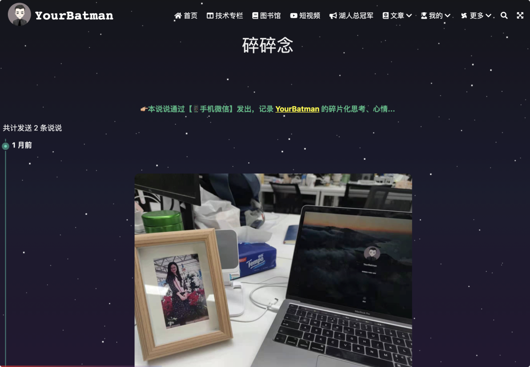 新增除了技术文章菜单外的更多“菜单”,体现出个人站点更具个性化 -