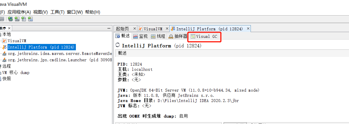 启动程序之后去jvisualvm查看