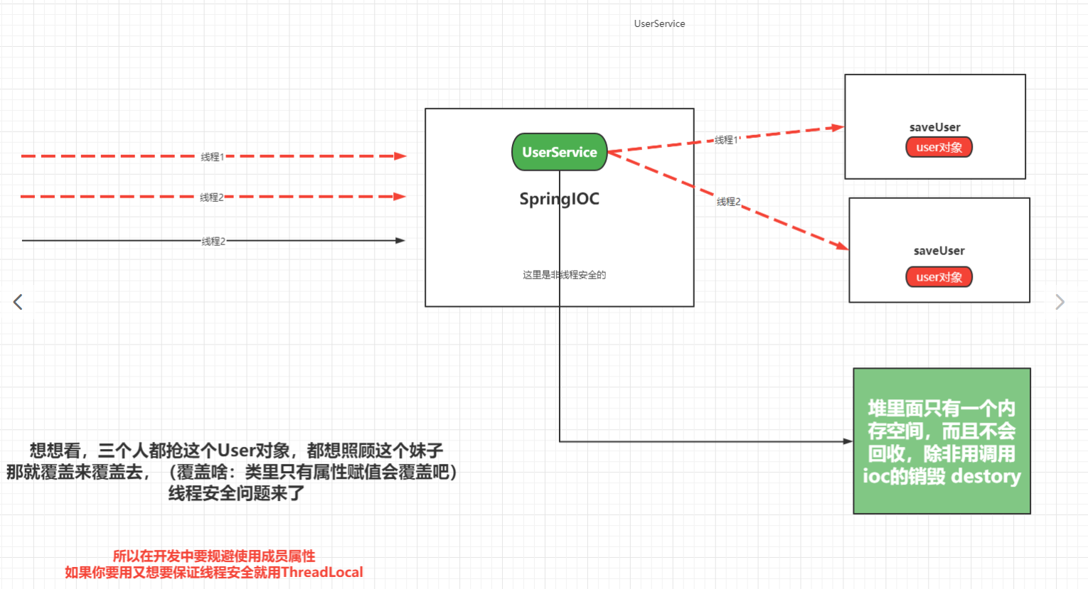 // 这里的User因为userservice是单列的。所以如果多线程执行给name赋值就会覆盖,造成所谓的线程安全问题