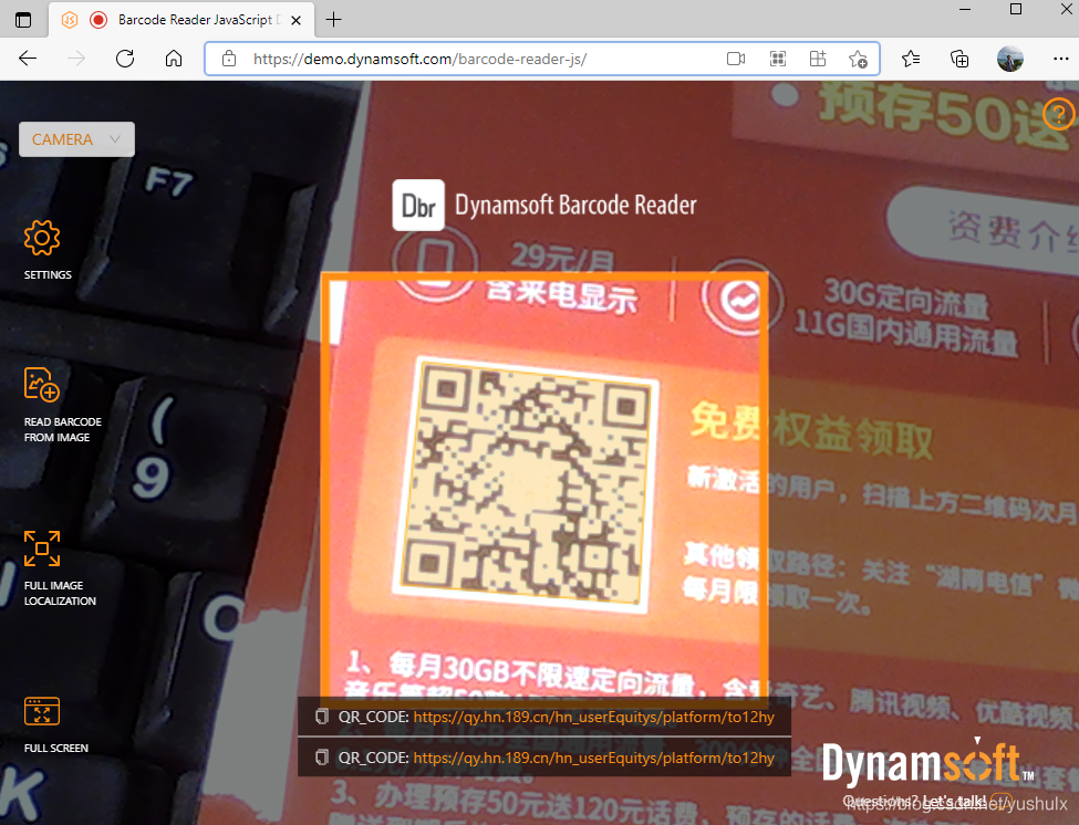 如果你只是想体验Web端的QR二维码,以及其它条形码的扫描,可以在浏览器直接打开 https://demo.dynamsoft.com/barcode-reader-js/