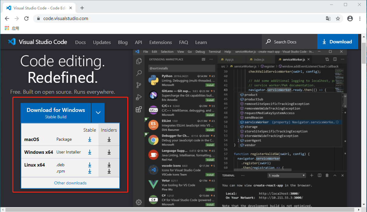 下载地址:https://code.visualstudio.com/