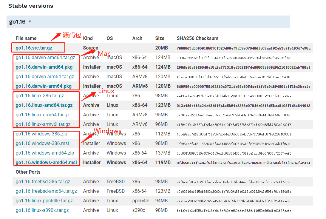 开发包下载地址为:https://golang.org/dl