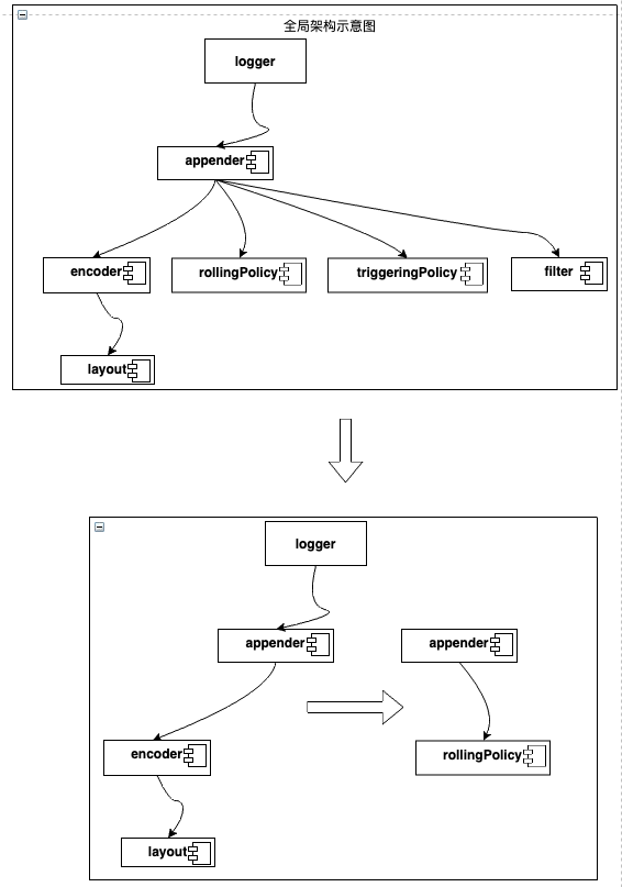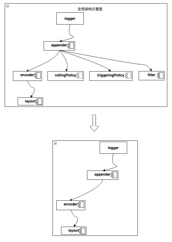 以 logback 为例,由于官方没有提供架构图,我根据文档大概画了一个架构图。