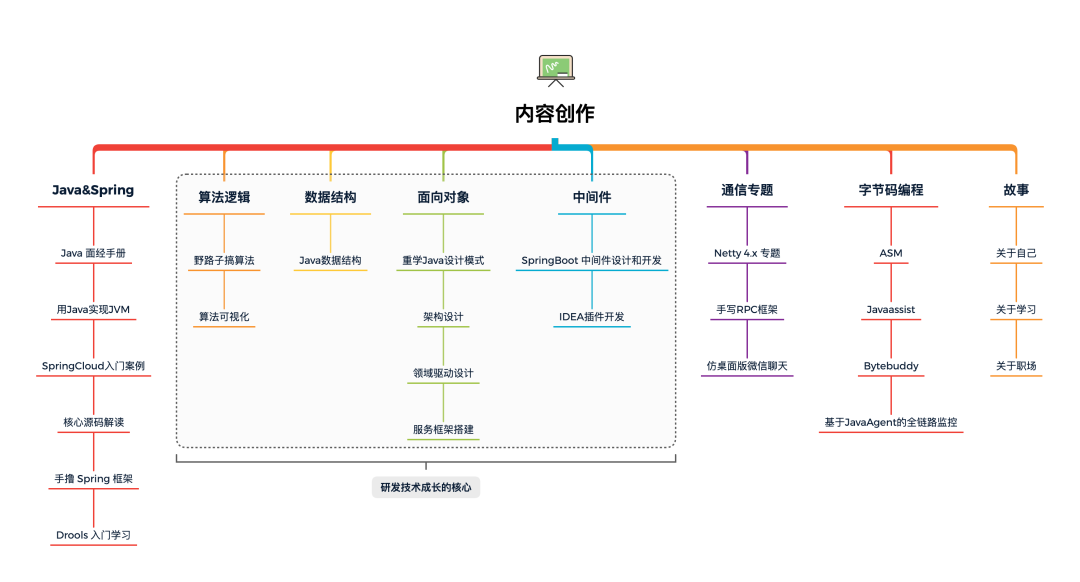 出书呢:后面每当沉淀好了一项内容,就会考虑出书,虽然出书整体是不太赚钱的,但IP价值还是不错的。比如你的书可以被粉丝收藏阅读、被图书馆采购、被公司宣传等等,同时出书也是每一位技术人在技术道路上的成长打卡! -