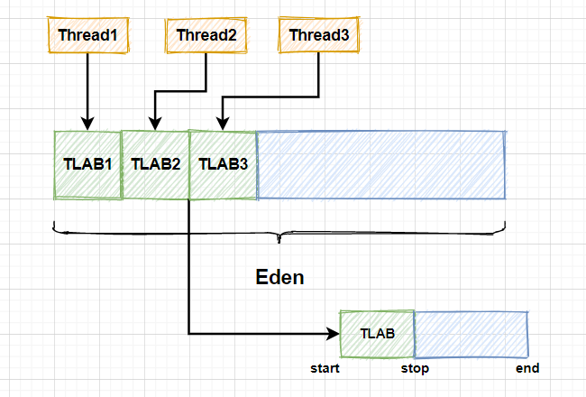 TLAB中成功分配内存(因为它的空间比较小),但JVM明确是将TLAB作为内存分配的首选;