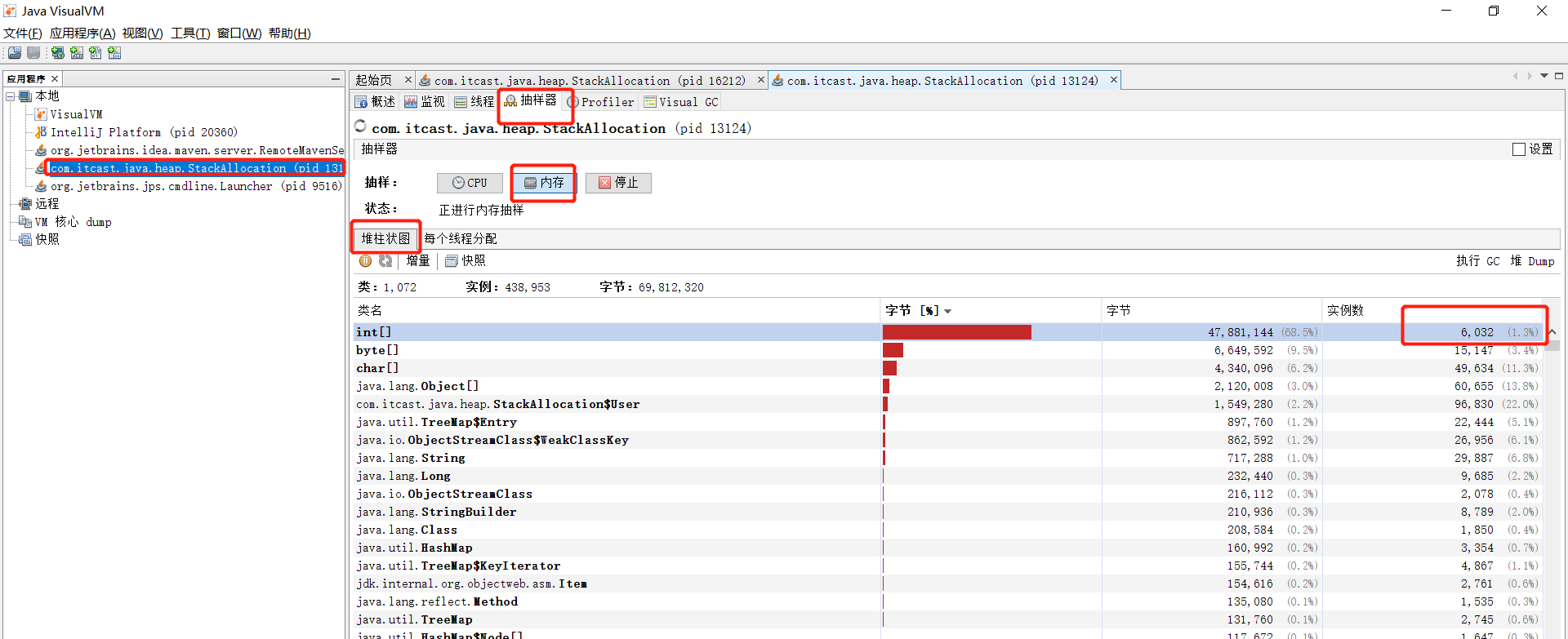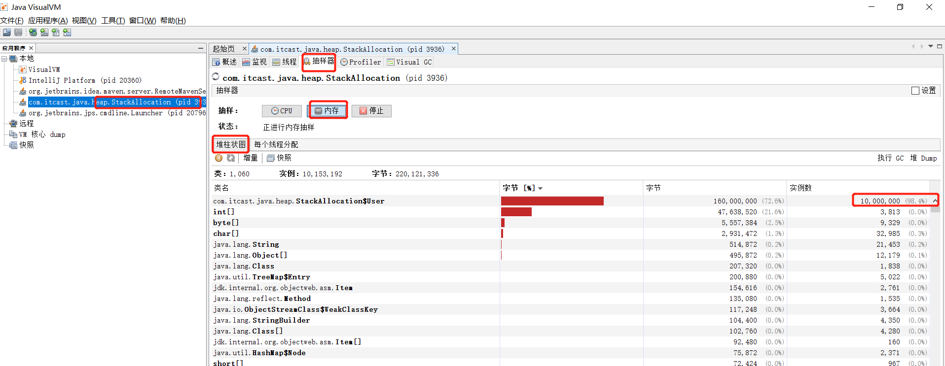 细心的小伙伴也应该能发现,我们在抽样器中的截图其实就是在堆中分配的对象。