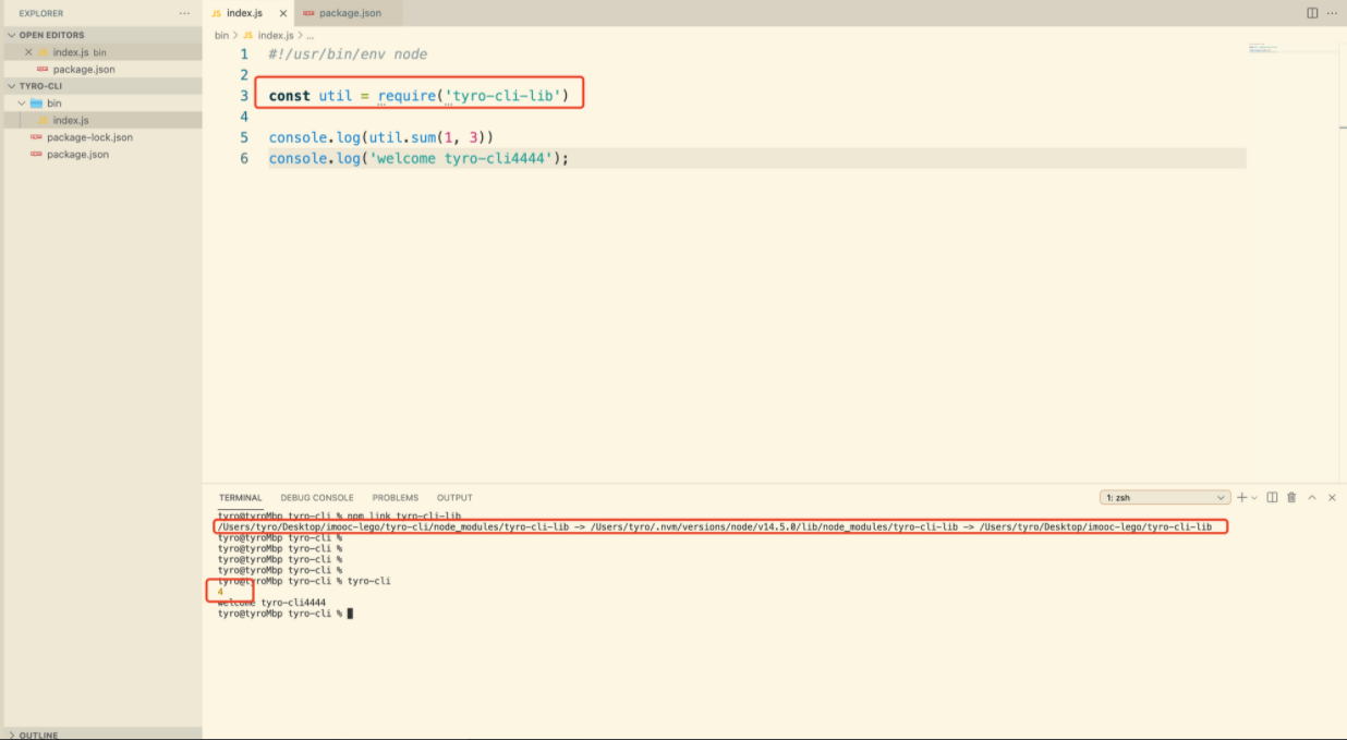 在 tyro-cli 中 执行 npm link tyro-cli-lib 指令即可,但要注意一点,tyro-cli 项目中的package.json文件并没有自动添加对 tyro-cli-lib的依赖。