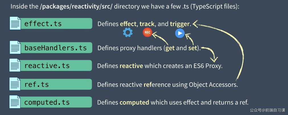 在源码的 packages/reactivity/src目录下,有以下几个主要文件: