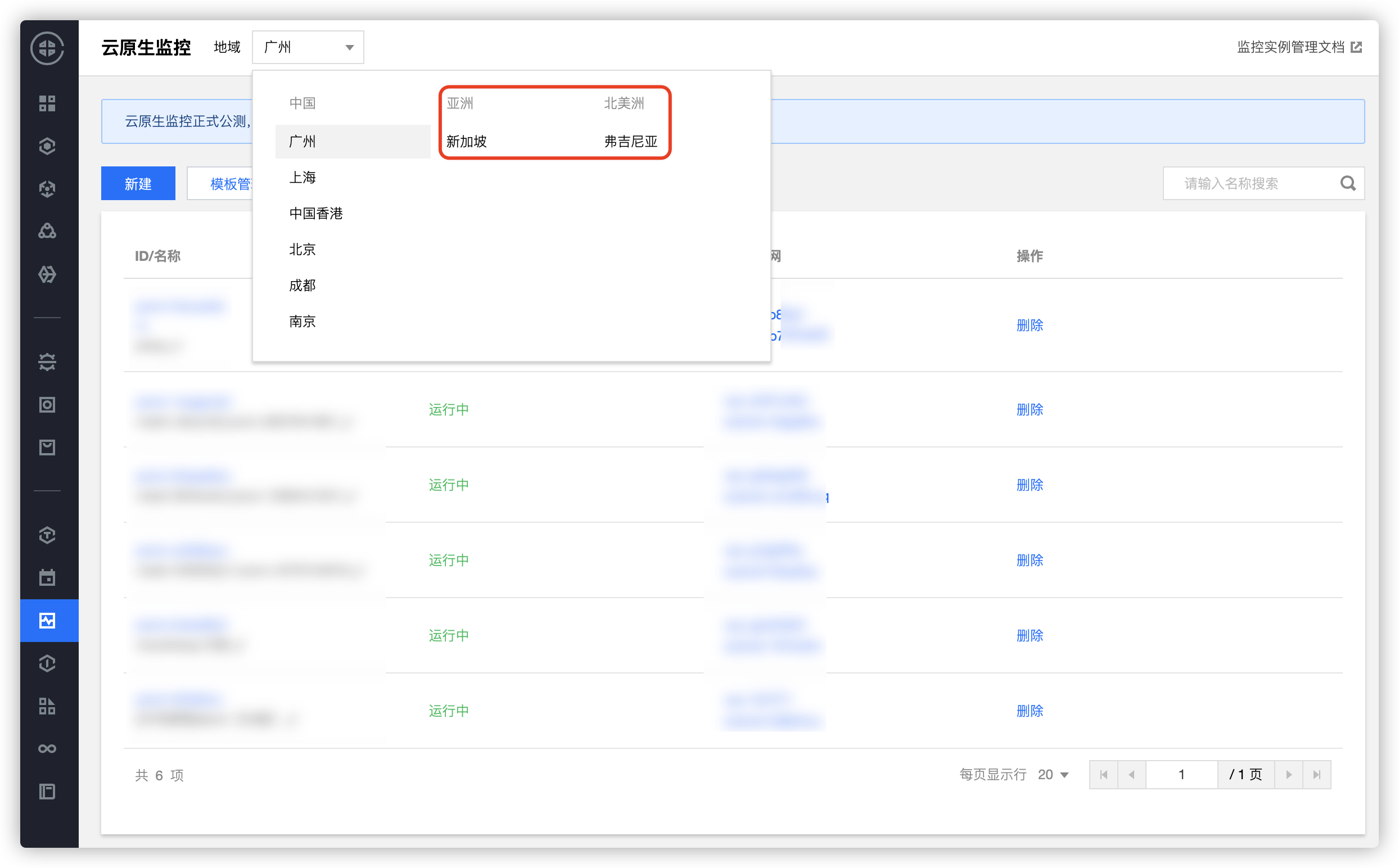 托管 Prometheus 支持新加坡、弗吉尼亚等地域
