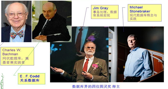 一看就知是聪明人. 下图是数据库界的四位得主。本来,以貌取人是根据不足的,但这四位得主,都有一股学者范(“范儿”是一种感觉,很难严格定义),几位学者,虽近髦耋,眉宇中有一股英气,目光坚定自信,相信在年轻时,叫人一看,就知是聪明人。