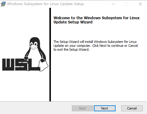 下载后把wsl_update_x64.msi双击打开,直接点击next安装即可