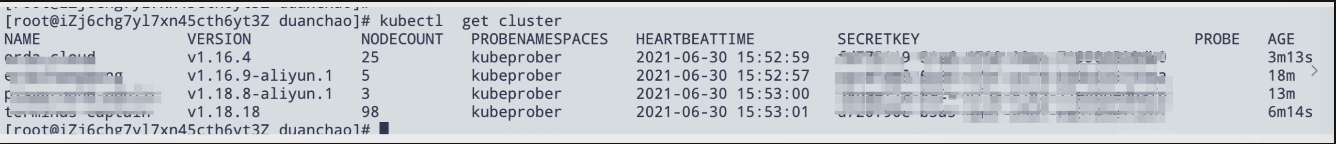 kubectl get cluster -o wide #可以获取到集群的secretkey