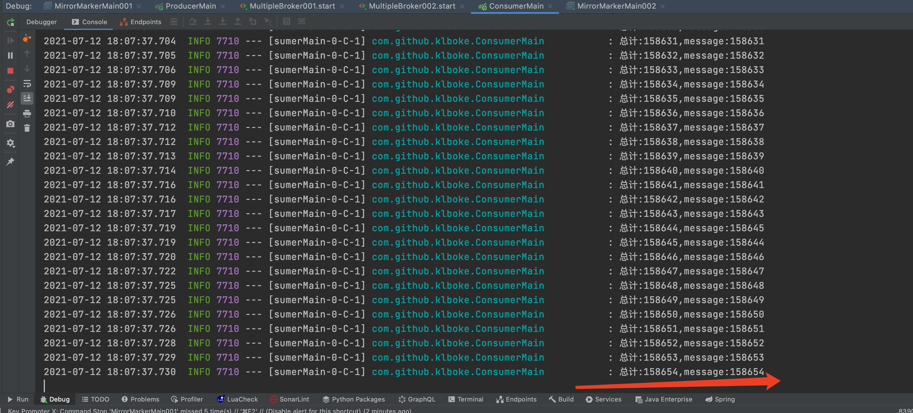 每做一次消息同步测试,都需要重启 ConsumerMain 服务,用于重置消息计数器,只有当计数器相等时,才认为消息同步成功无丢失无冗余