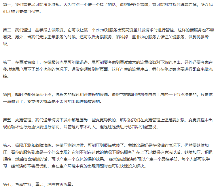 这个服务的负责人跟我说,“无论负载均衡策略如何高效,系统某个部分总会过载,所以他们会先考虑优雅降级,返回低质量的结果,提供有损服务。在最差的情况,妥善的限流来保证服务本身稳定。”