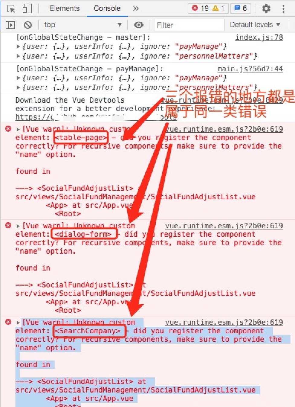[Vue warn]: Unknown custom element: <table-page> - did you register the component correctly? For recursive components, make sure to provide the "name" option.