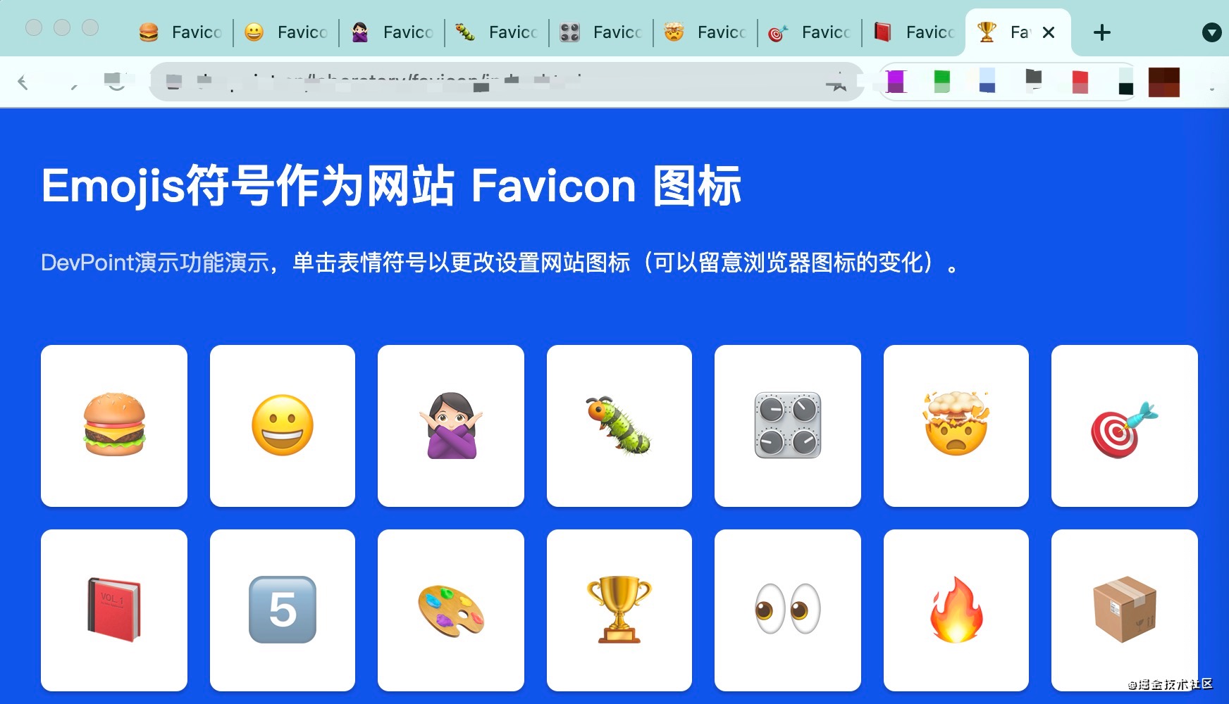 Emoji表情符号作为网站图标,在SVG的文本元素中使用表情符号来制作一个带有透明背景的小图标,以此作为网站的图标。如有兴趣,可以点击这里查看DEMO 。