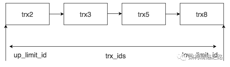 trx_ids,系统当前正在活跃的事务 ID 集合;