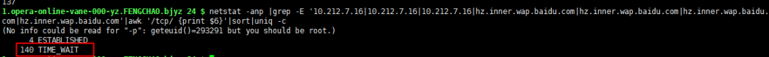 很明显是一个端口绑定冲突的问题,于是大概排查了一下当前系统的网络连接情况和端口使用情况,发现是有大量time_wait的连接一直占用着端口没释放,导致端口被占满(最高的时候6w+个),因此HttpClient建立连接的时候会出现申请端口冲突的情况。