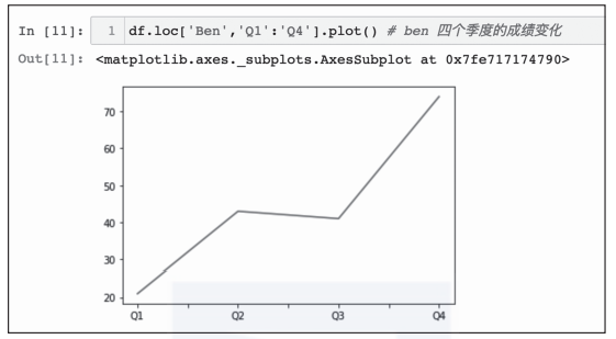 df.loc['Ben', 'Q1':'Q4'] # 只看Ben的四个季度成绩