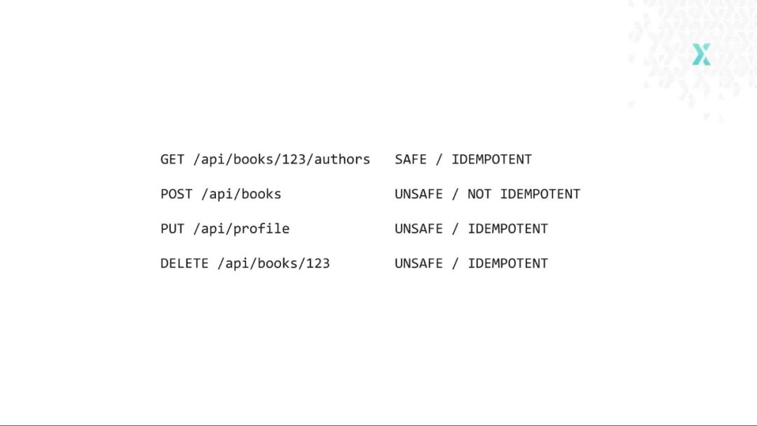 “幂等”的方法指的是多次使用不会产生不同结果的方法。按照 REST,DELETE 方法应该是幂等的,如果删除了某个资源,然后针对相同的资源再次调用 DELETE,它不会改变任何东西。资源应该早就已经消失了。在 REST 规范中,POST 是唯一一个非幂等的方法,所以我们可以对相同的资源多次调用 POST 方法,这样我们会得到重复的资源。