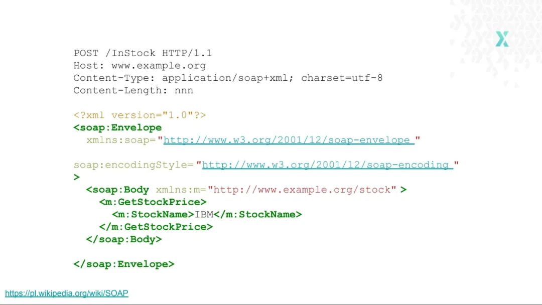 通常我们会有一个端点,可以对它进行调用以获取一堆 XML。在这方面,一个典型的例子就是 SOAP 协议: