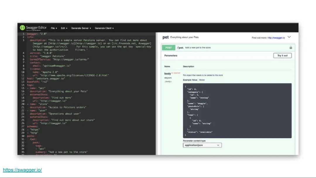 自更新的文档工具可以解决这个问题。在这方面,一个流行的工具就是 Swagger,它是基于 OpenAPI 构建的工具,可以很容易地描述你的 API。