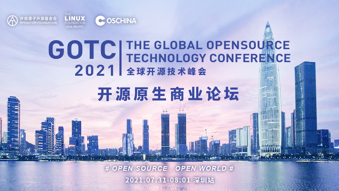 7 月 31 日至 8 月 1 日,GOTC 全球开源技术峰会深圳站会在深圳会展中心与大家见面,继续开源之旅。同时,GOTC 2021 深圳站特设「开源原生商业」专题论坛,正式启动中国开源原生商业社区。